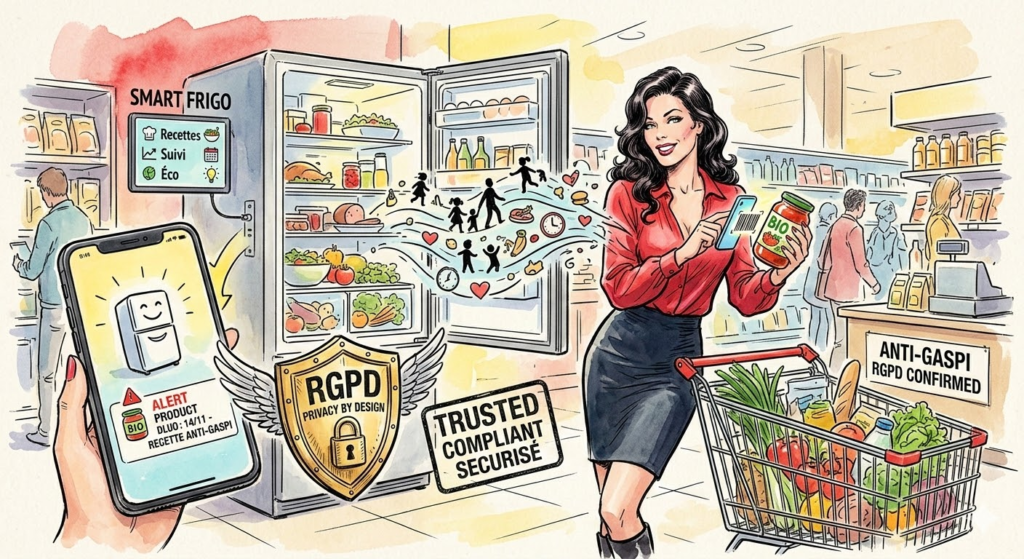Lancer une application qui scanne les produits alimentaires, suit les dates de péremption, propose des recettes anti‑gaspillage et, demain, se connecte à des frigos intelligents, c’est séduisant pour les clients… et pour les régulateurs !