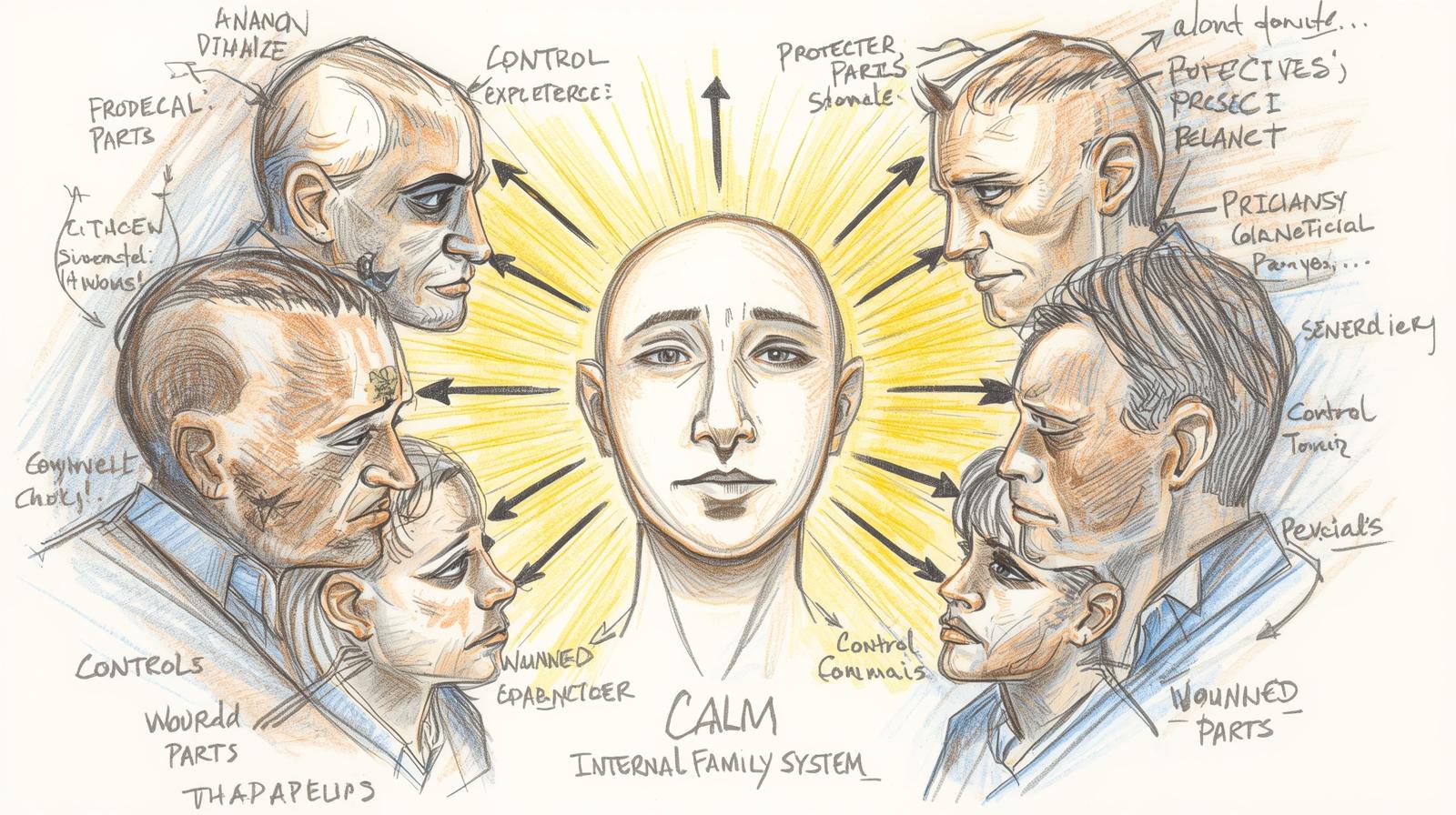 - Au centre, il existe un Self calme et bienveillant, capable de dialoguer avec ces parties pour restaurer l’équilibre.